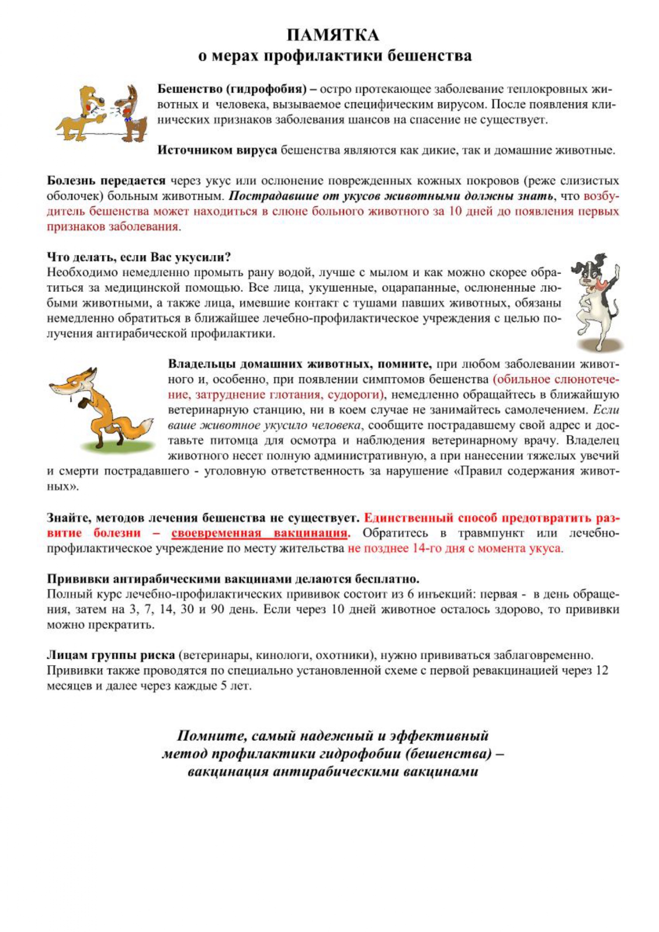 Памятка. Бешенство