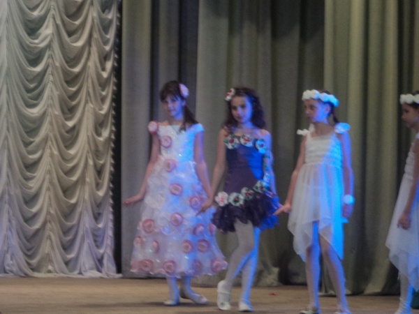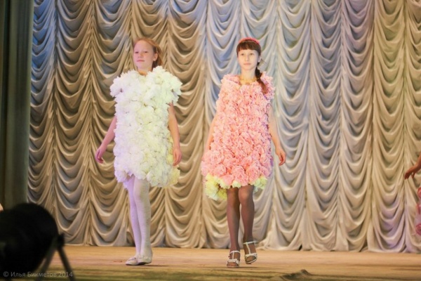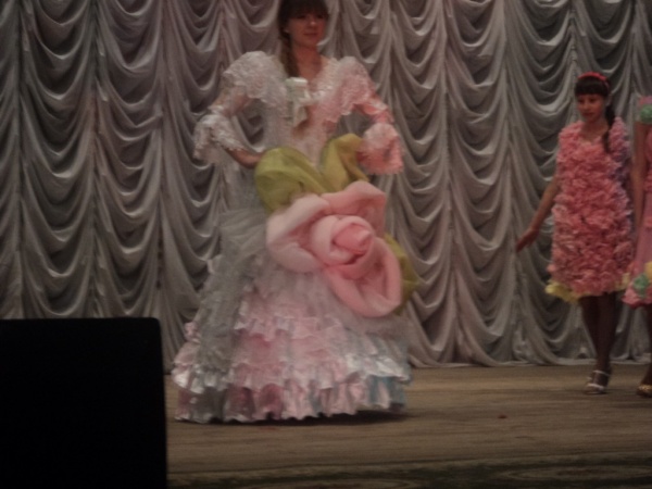 Второе место в номинации «Экстра-класс» заняла школа с. Калтыманово, представившая коллекцию «Элегия» . Одежда выполнена из цветов сделанных из гофрированной и упаковочной бумаги. Руководитель коллектива Сливинская Н.А.