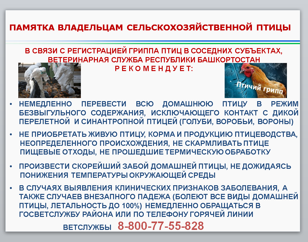 ПАМЯТКА ВЛАДЕЛЬЦАМ СЕЛЬСКОХОЗЯЙСТВЕННОЙ ПТИЦЫ