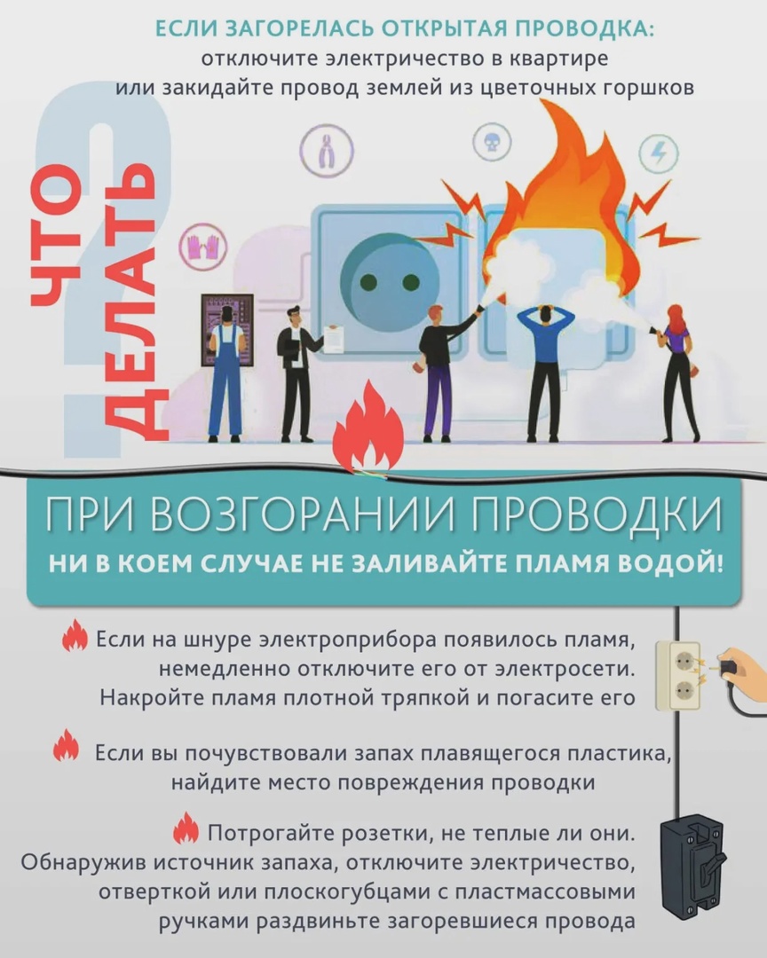 Запрещается эксплуатировать электрические сети с поврежденной изоляцией, запрещается эксплуатация повреждённых электрических розеток; не перегружайте электрические сети — не подключайте много приборов в одну сеть с помощью удлинителей; обогреватели должны быть установлены на безопасном расстоянии от предметов мебели.