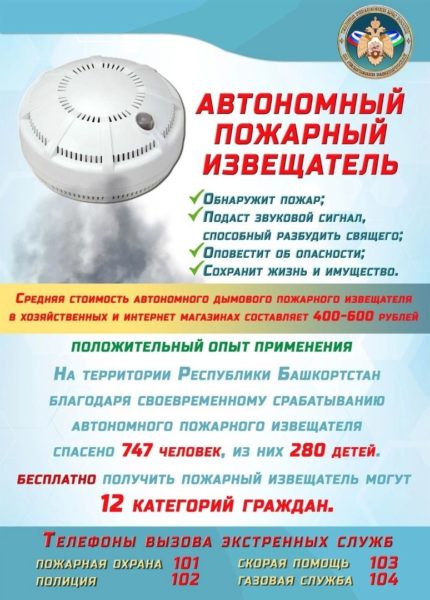 На сегодняшний день одним из наиболее эффективных средств по предупреждению гибели людей от пожаров является автономный пожарный извещатель, который реагирует на дым на ранней стадии возгорания и способен громким звуковым сигналом тревоги своевременно предупредить жителей о возникновении загораний.
