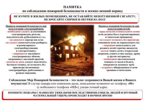 Памятка по соблюдению пожарной безопасности в осенне-зимний период