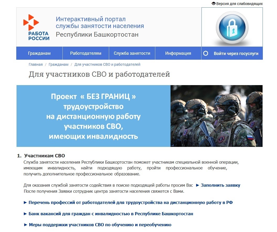 Гражданам, желающим участвовать в проекте «Без границ», нужно оставить заявку на лендинг-странице на Интерактивном портале службы занятости населения Республики Башкортостан (clck.ru/3ML2hU).