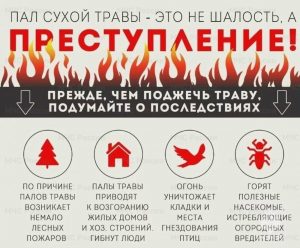 Запрещается разводить костры в хвойных молодняках, вблизи деревьев, на лесосеках, захламлённых порубочными остатками, на торфяниках и участках с сухой травой, мхом, в лесопосадках.